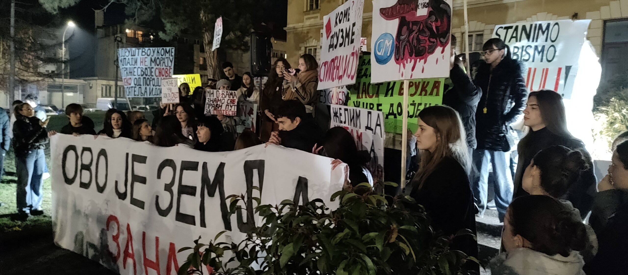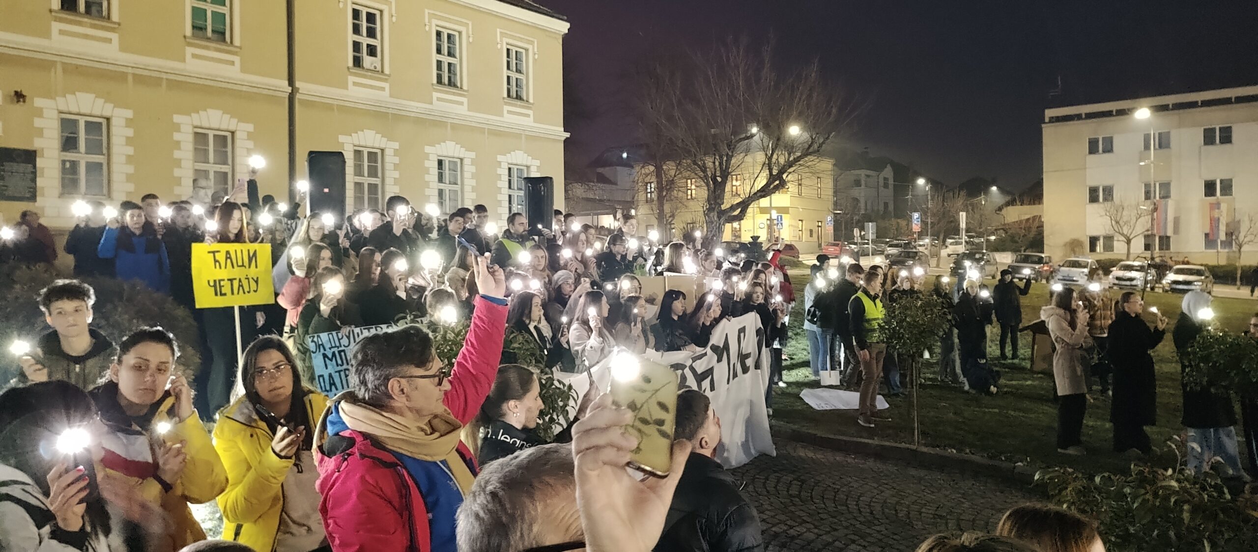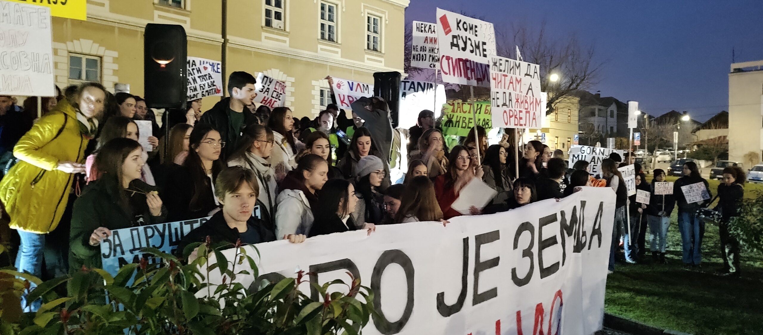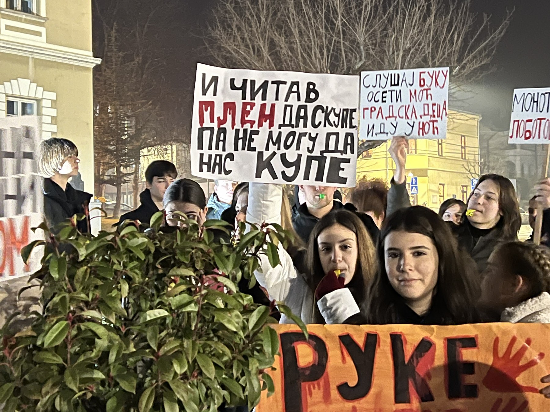 „Želimo da živimo u zemlji za nas!“ poručili su milanovački srednjoškolci i studenti večeras na protestu „Ustani, Milanovac – ruke su im krvave“. Sugrađani su se masovno odazvali da ih podrže.