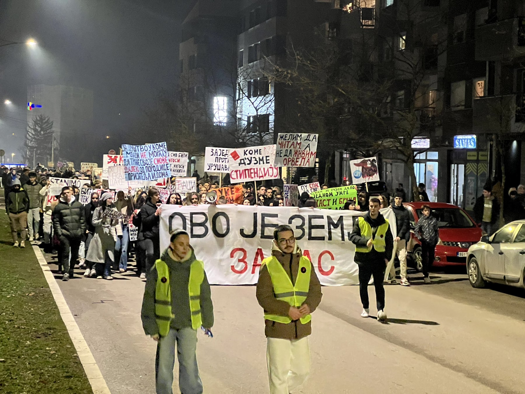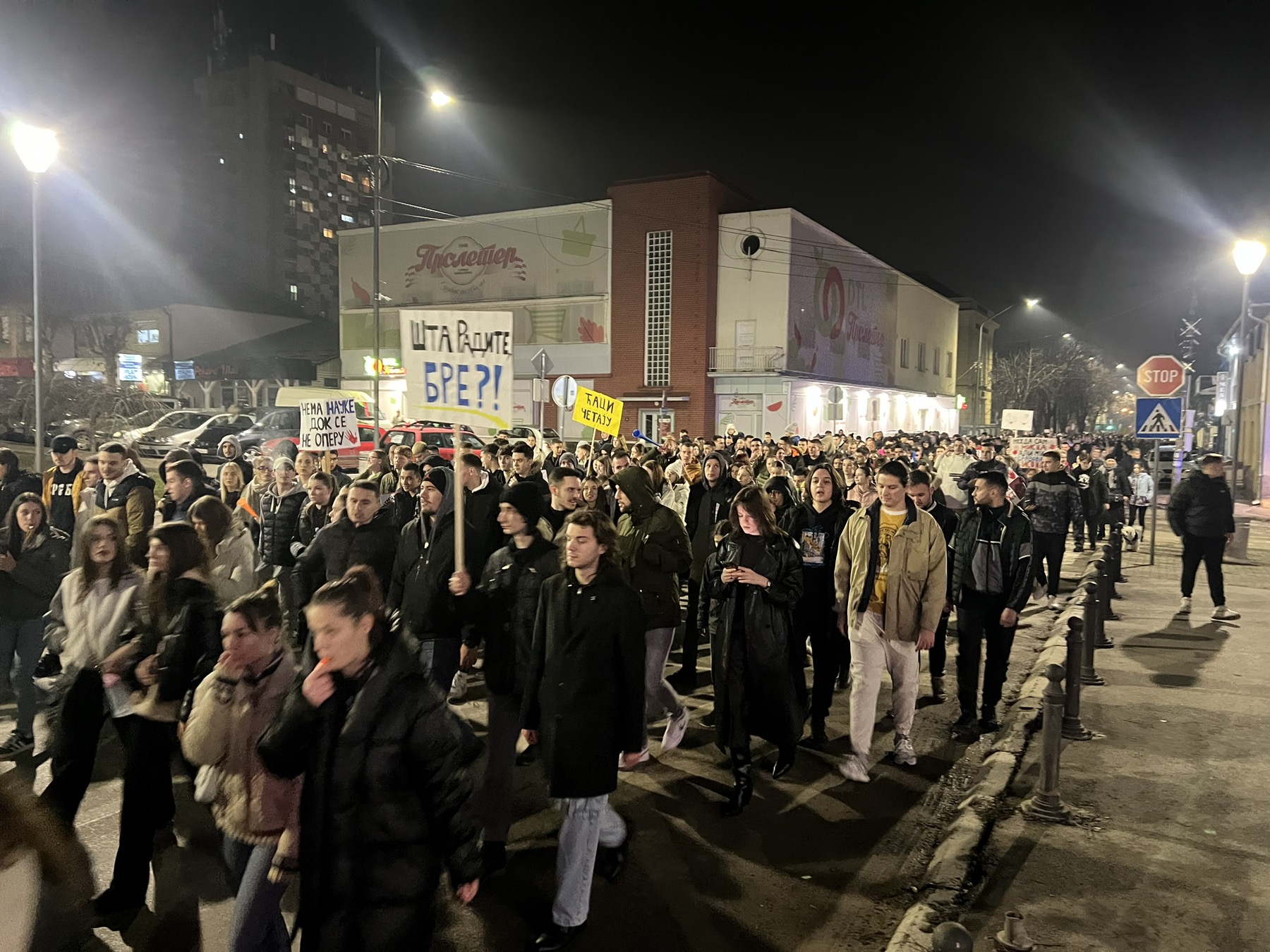 Kolona je potom krenula glavnom ulicom, skrenula u Despotovačku i Sinđelićevom se vratila kroz Heroja Draževića u Vuka Karadžića, gde je ponovo pored Gimnazije formiran skup kome su srednjoškolci preko razglasa, uz veliko hvala svima što podržavaju učenike i nastavnike, poručili okupljenima da neće prestati s borbom.