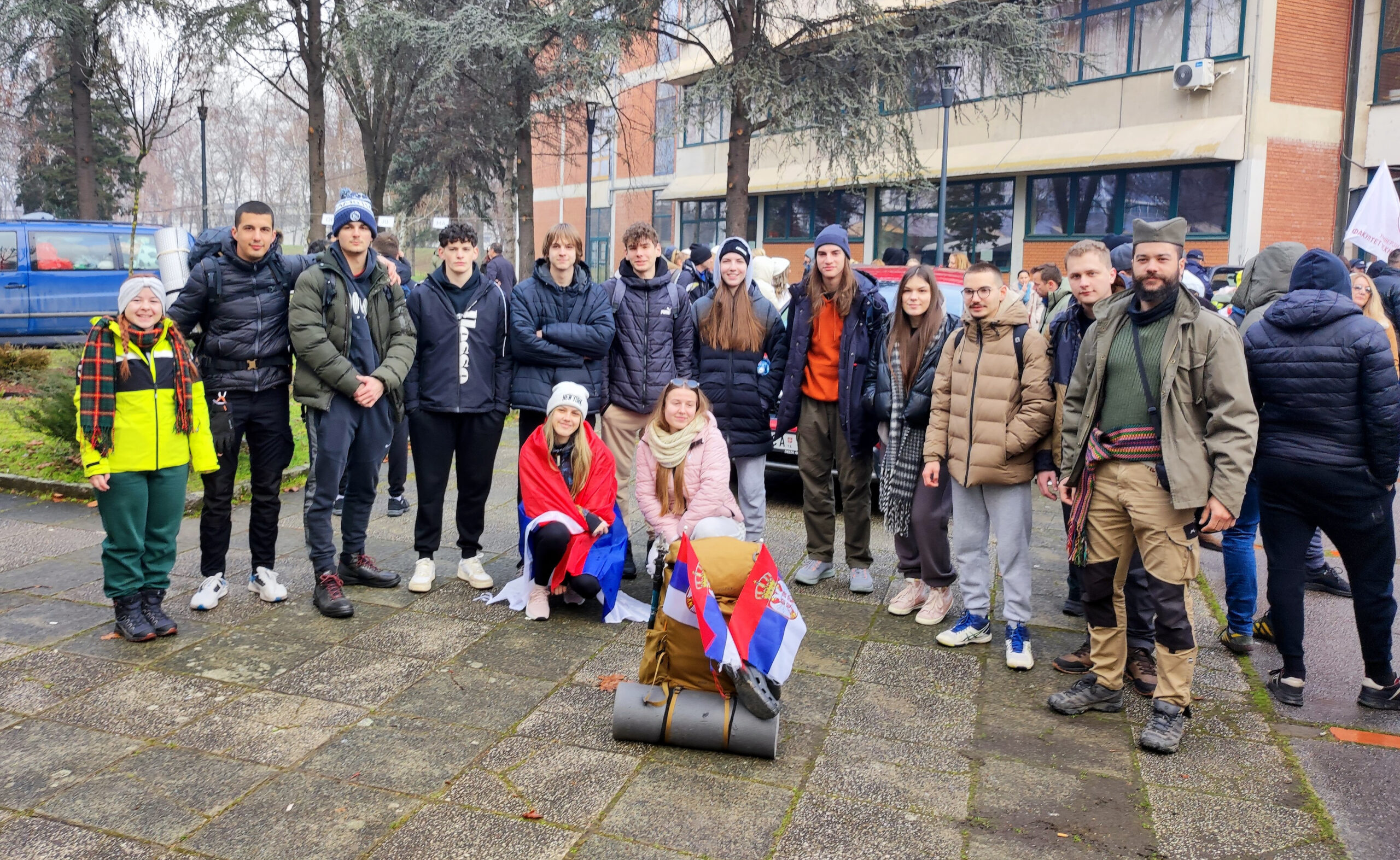 Zajedno sa kolegama iz Čačka, ima ih oko trista. Na okupljanju kod FTN-a pre polaska ispratili su ih stariji sugrađani, roditelji i profesori. Za Kragujevac idu preko Mrčajevaca, gde će se sastati sa studentima i maturantima iz Kraljeva i Novog Pazara, pa krenuti dalje kao jedna kolona. Do petka ujutru noćiće u Kniću.
