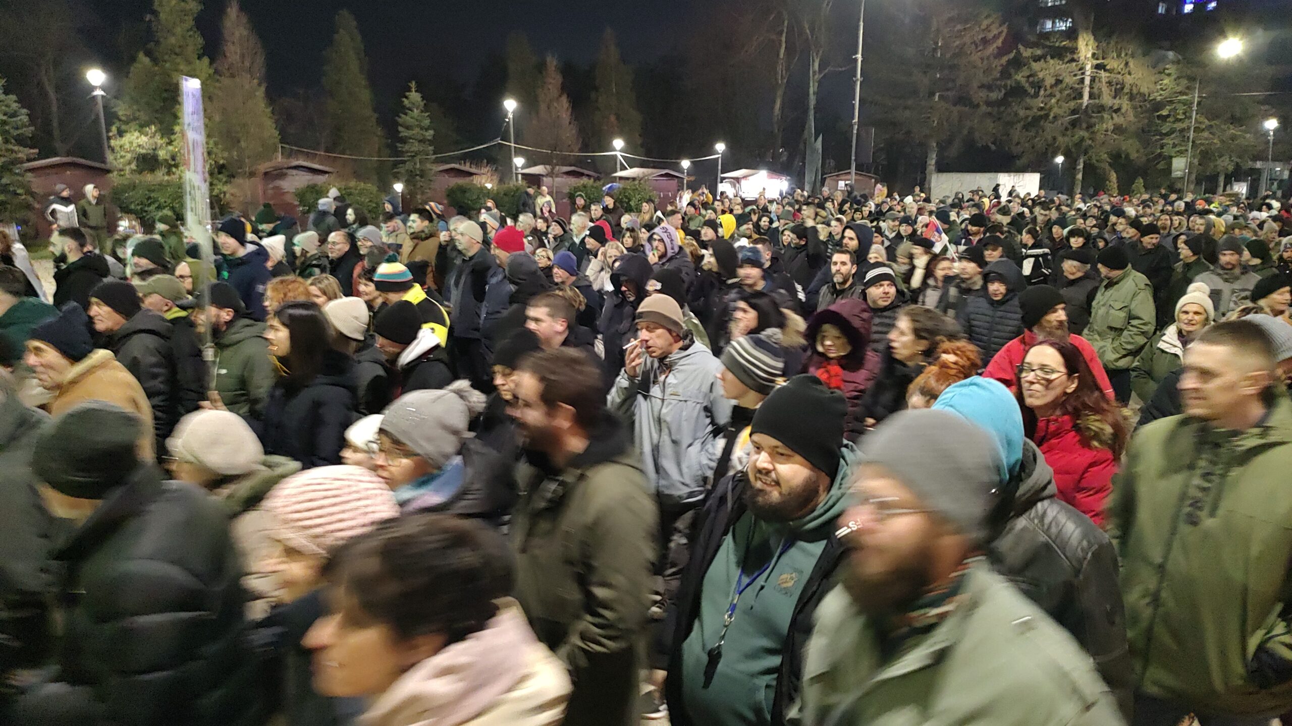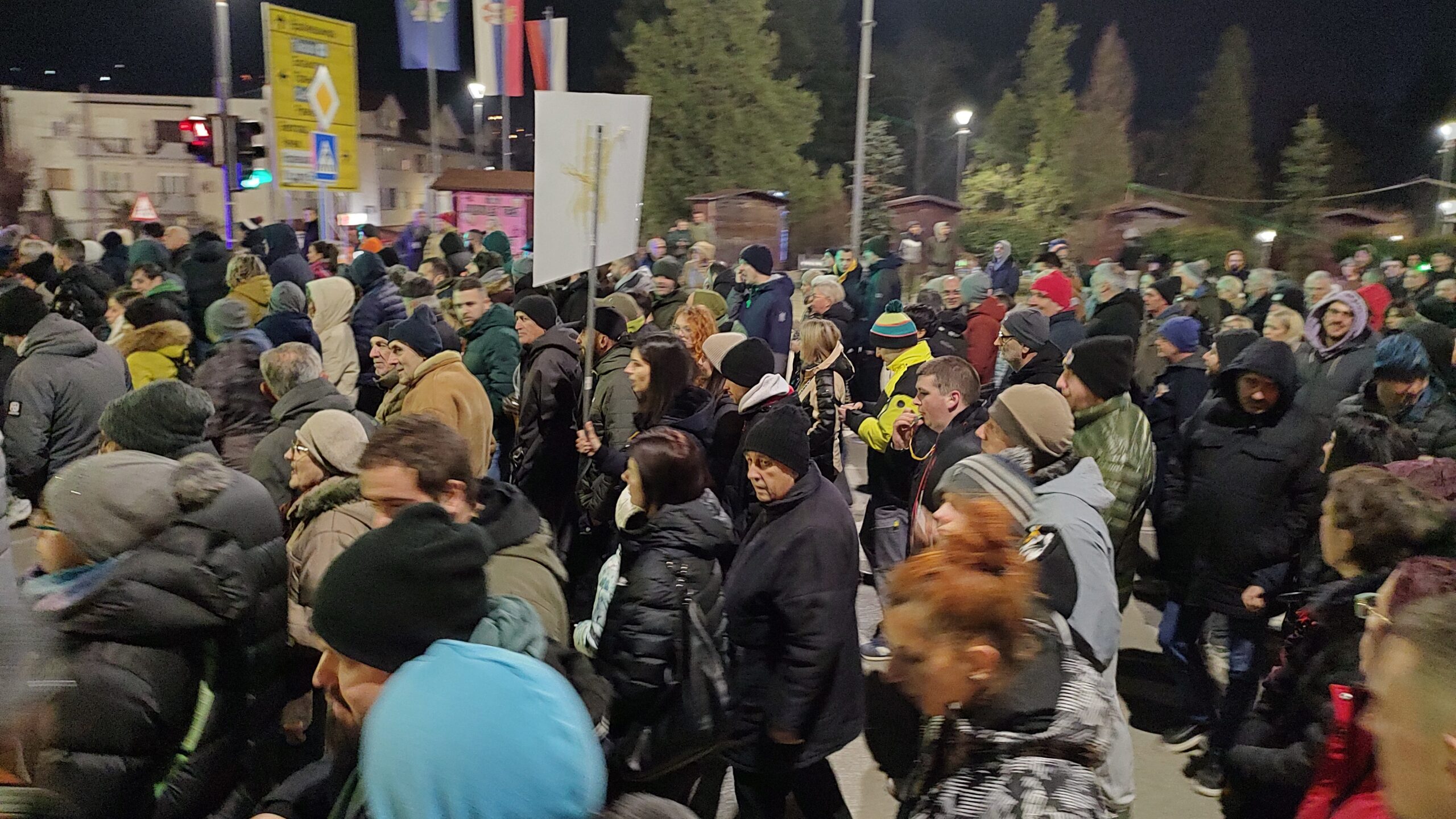 Sa improvizovane govornice ispod spomenika Živojinu Mišiću sugrađanima se obratio Bojan Savković iz UZINAT-a, predloživši da se večerašnji skup tretira i kao plenum građana koji će se izjasniti o tri predloga: